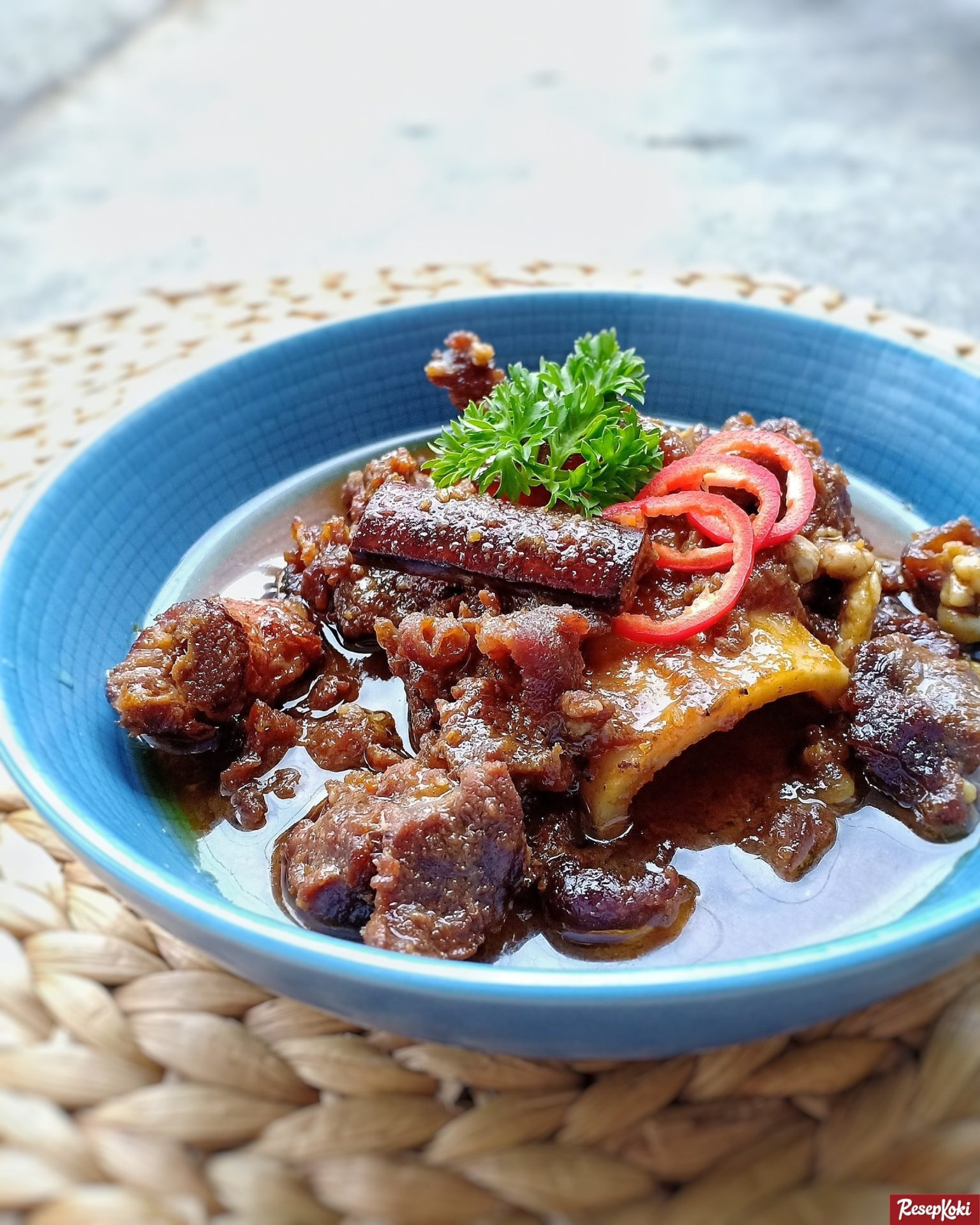 350 g daging sapi bagian gandik, potong dadu 3 cm · 250 g daging sapi bagian sandung lamur, potong kotak 2 cm · 1 buah ubi jalar oranye · 10 butir . · tambahkan kecap dan garam dan gula.masak . Rasanya gurih manis dan kaya rempah yang pekat. Rebus daging hingga empuk · tumis bumbu halus,sereh,lengkuas dan daun salam hingga harum dan tanak. 1 kg daging sapi has dalam, potong dadu 4 x 4 .
